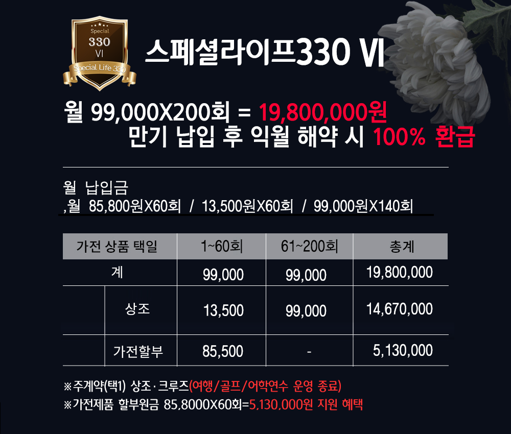 • ★ 만기 납입 후 익월 해약 또는 라이프서비스 사용시 고가가전 혜택 제공